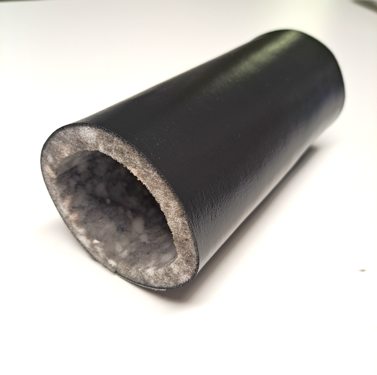 Äänenvaimenninputki on valmistettu puristemateriaalista ( polyesterivaahtomuovi ), joka on pinnoitettu ulkovaipaltaan mustalla polyuretaanikalvolla. Materiaali on pölyämätön ja pintakerros suojaa kosteudelta. Putkea on helppo leikata ja muotoilla esim.katkoveitsellä läpivientikanavan vaatimaan mittaan.