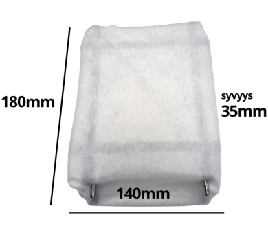 Suodatin laitetaan kehikon ympärille ja kiinnitetään neljälle magneetilla.